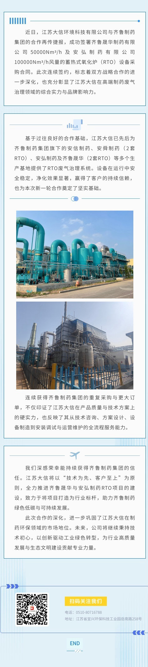 强强联手:江苏大信连续中标齐鲁制药RTO项目